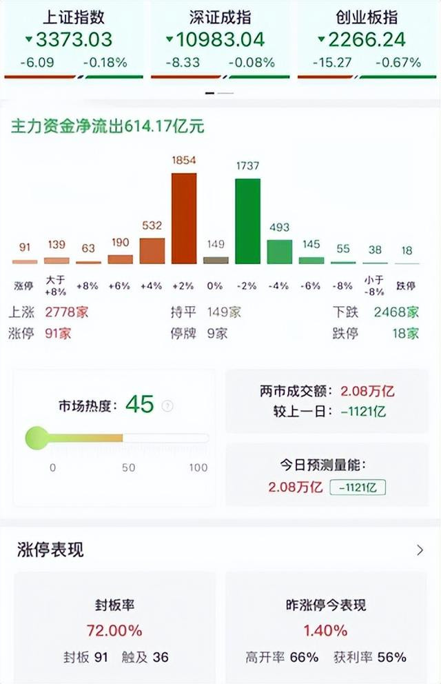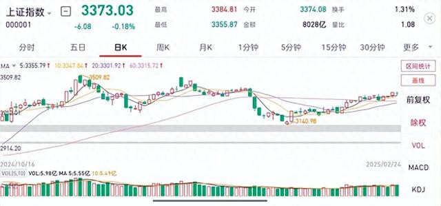 最新价:3373.03;涨跌额:-6.08;涨跌幅:-0.18%;成交量:5.98亿手;成交额:8028亿;换手率:1.26%。